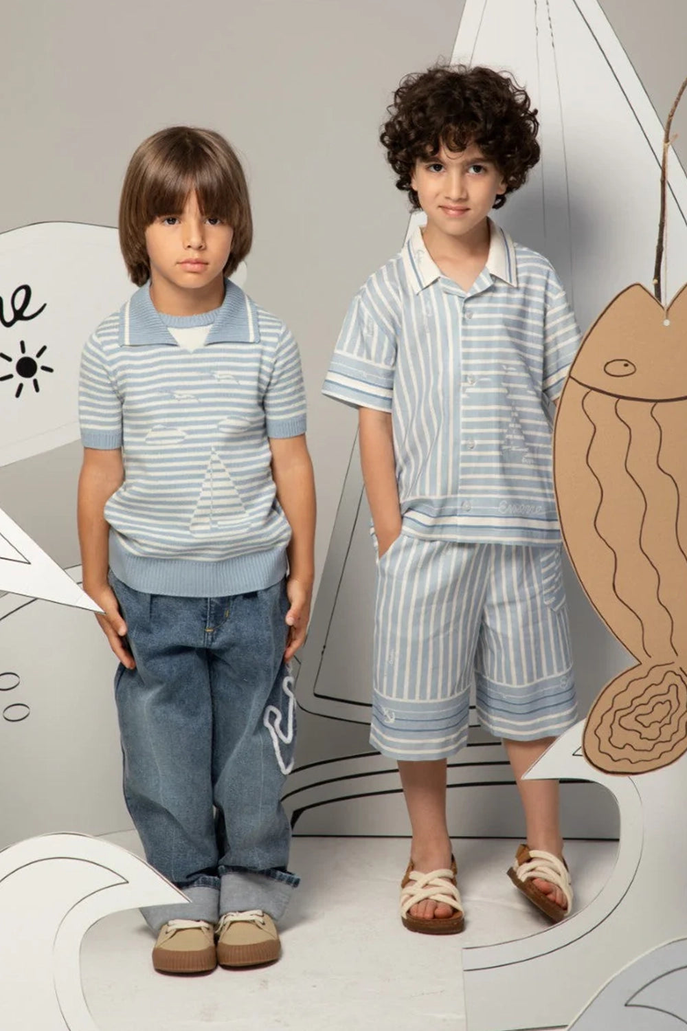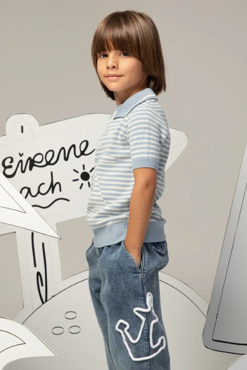 This light blue and white striped knit shirt exudes playful maritime charm. Crafted from soft, breathable cotton, it is an essential piece for elegant casual wear.