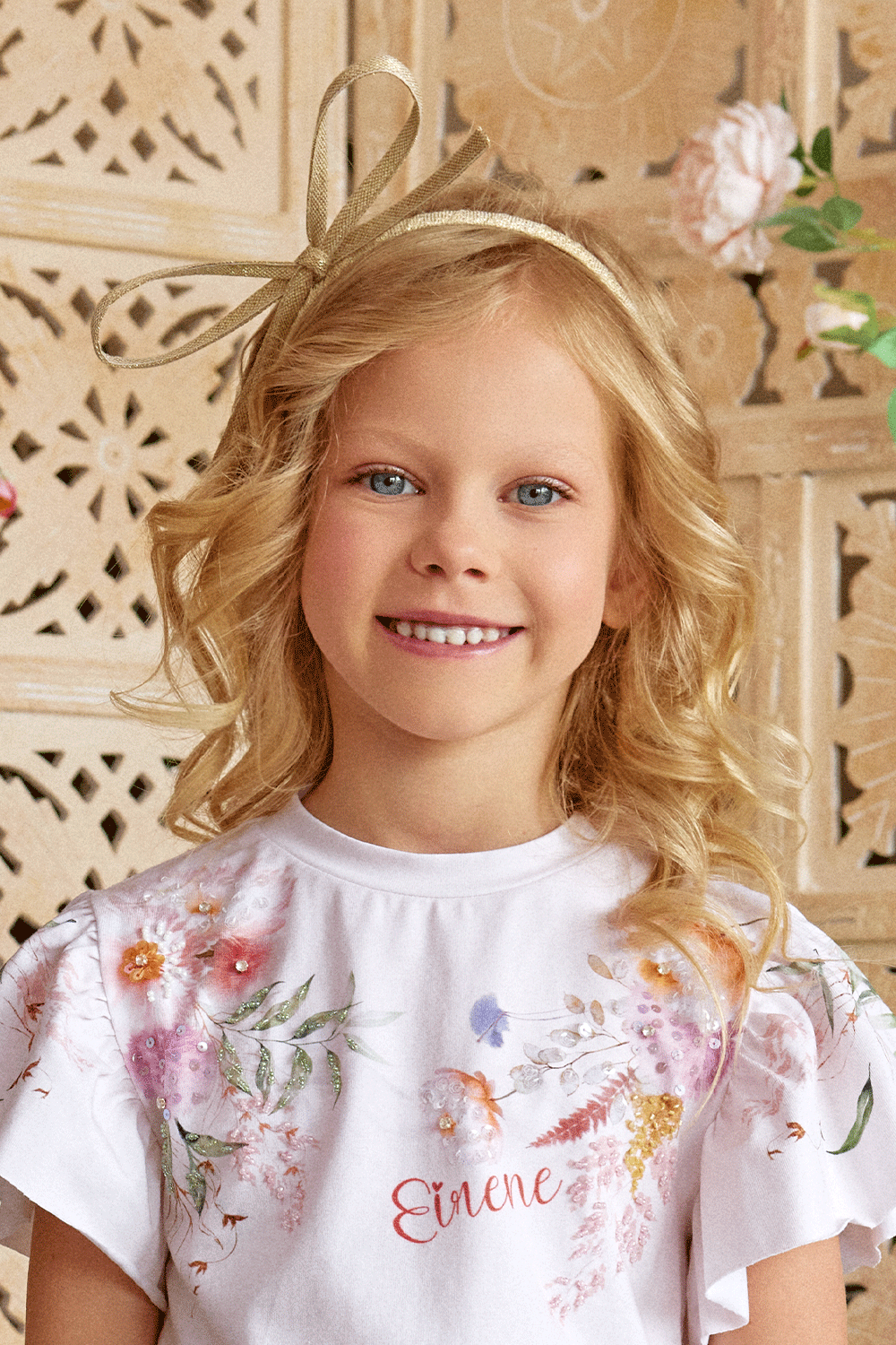 This charming White cotton t-shirt, featuring a delightful floral print, offers everyday elegance for your little one.