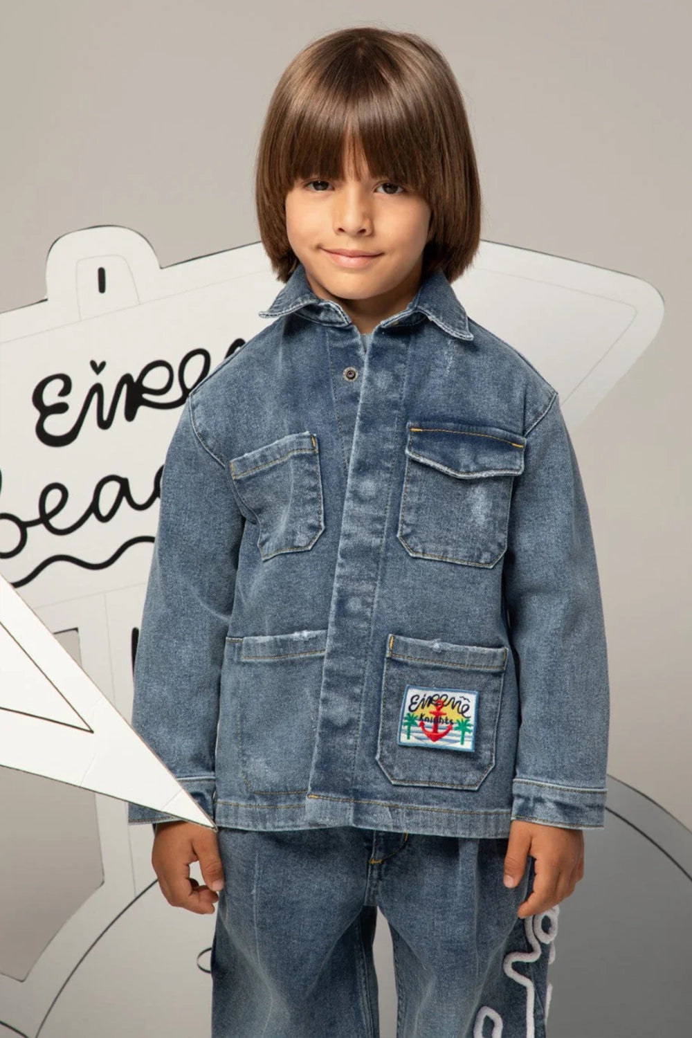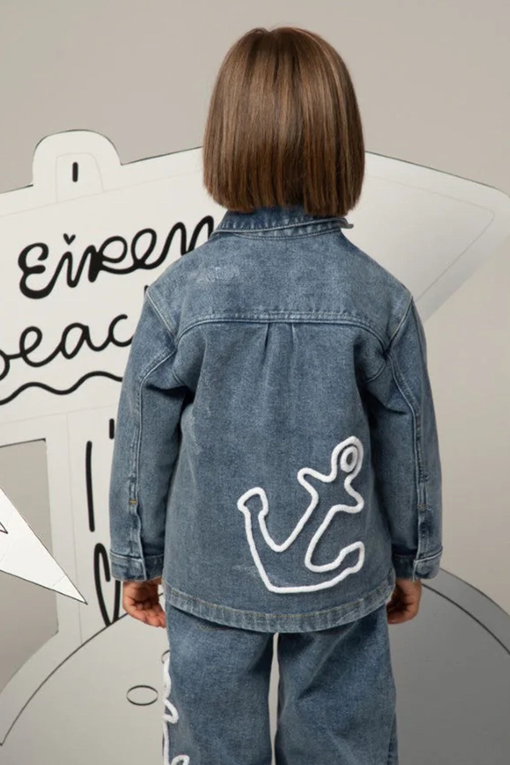This charming blue denim jacket is a foundational piece for any child's wardrobe.