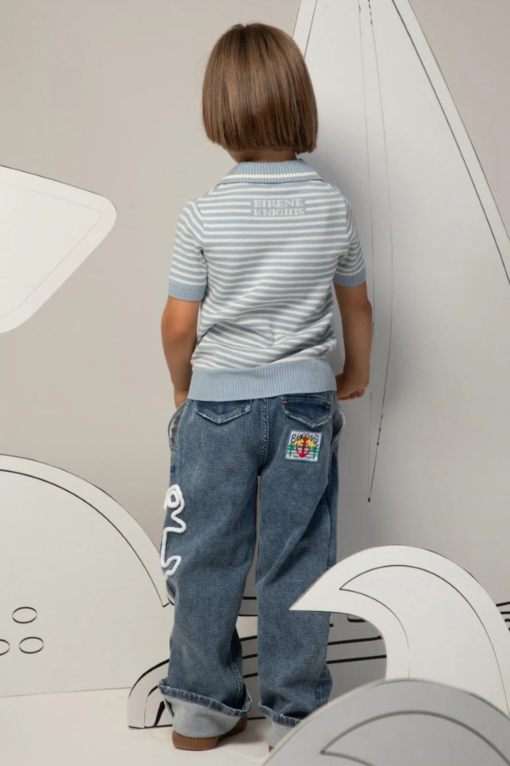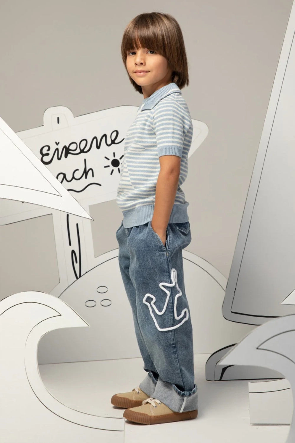The soft denim allows for easy movement and comfort throughout the day, while the cuffed hems add a distinctly modern silhouette. A unique, artisanal anchor detail is subtly stitched on the leg, setting these apart from everyday wear.