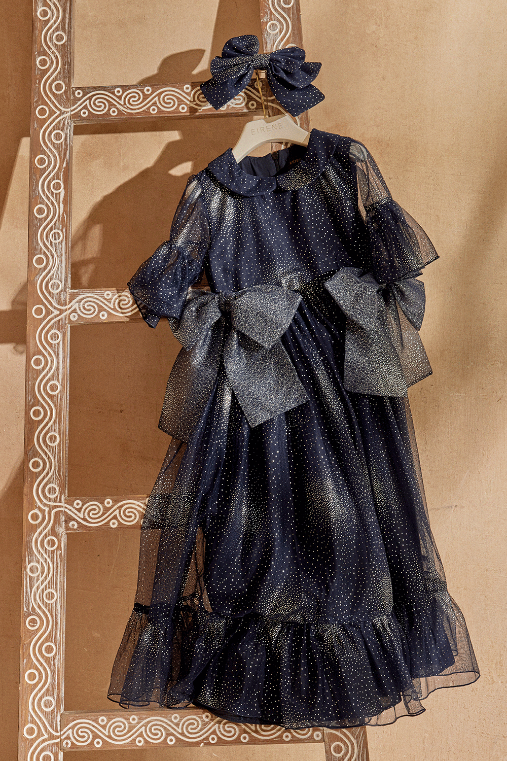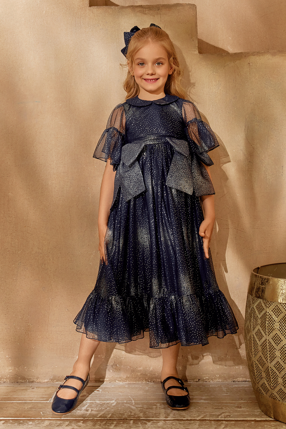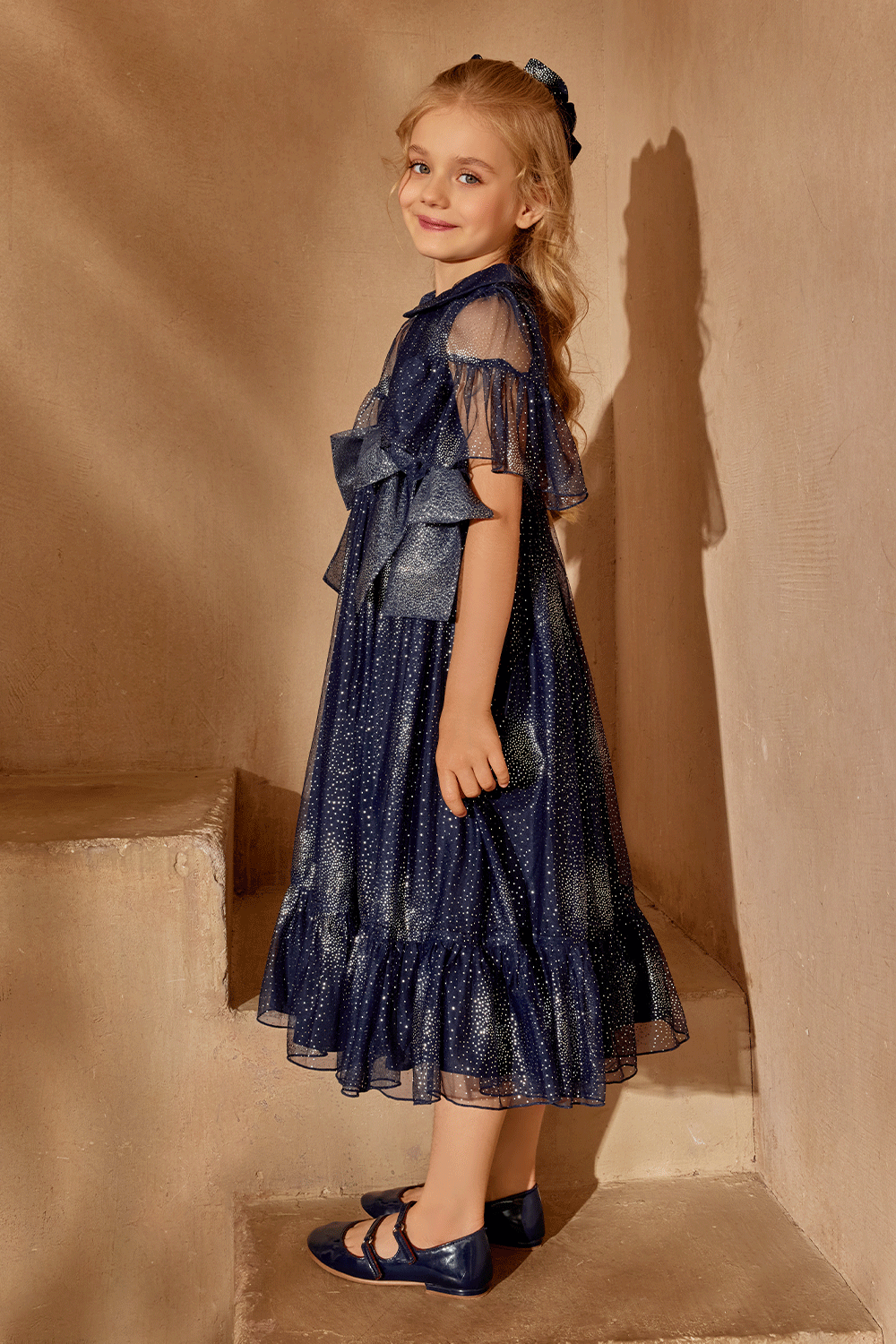 This dark blue and silver dress offers effortless elegance for every young wearer.