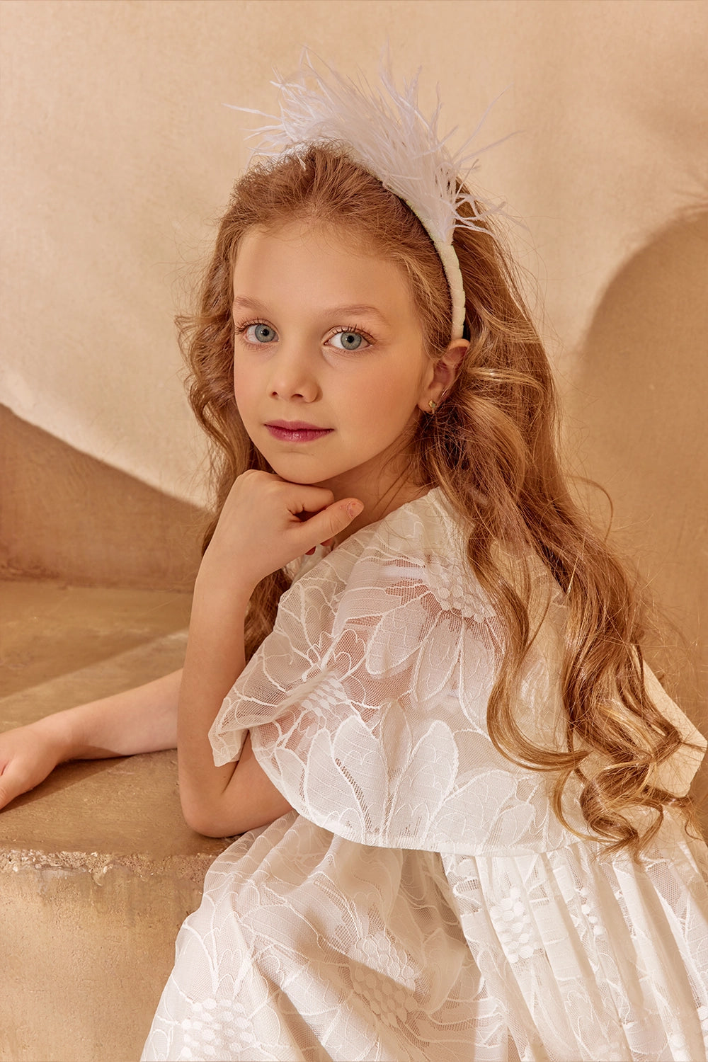 This off-white floral lace dress captures timeless elegance, perfect for your little one.