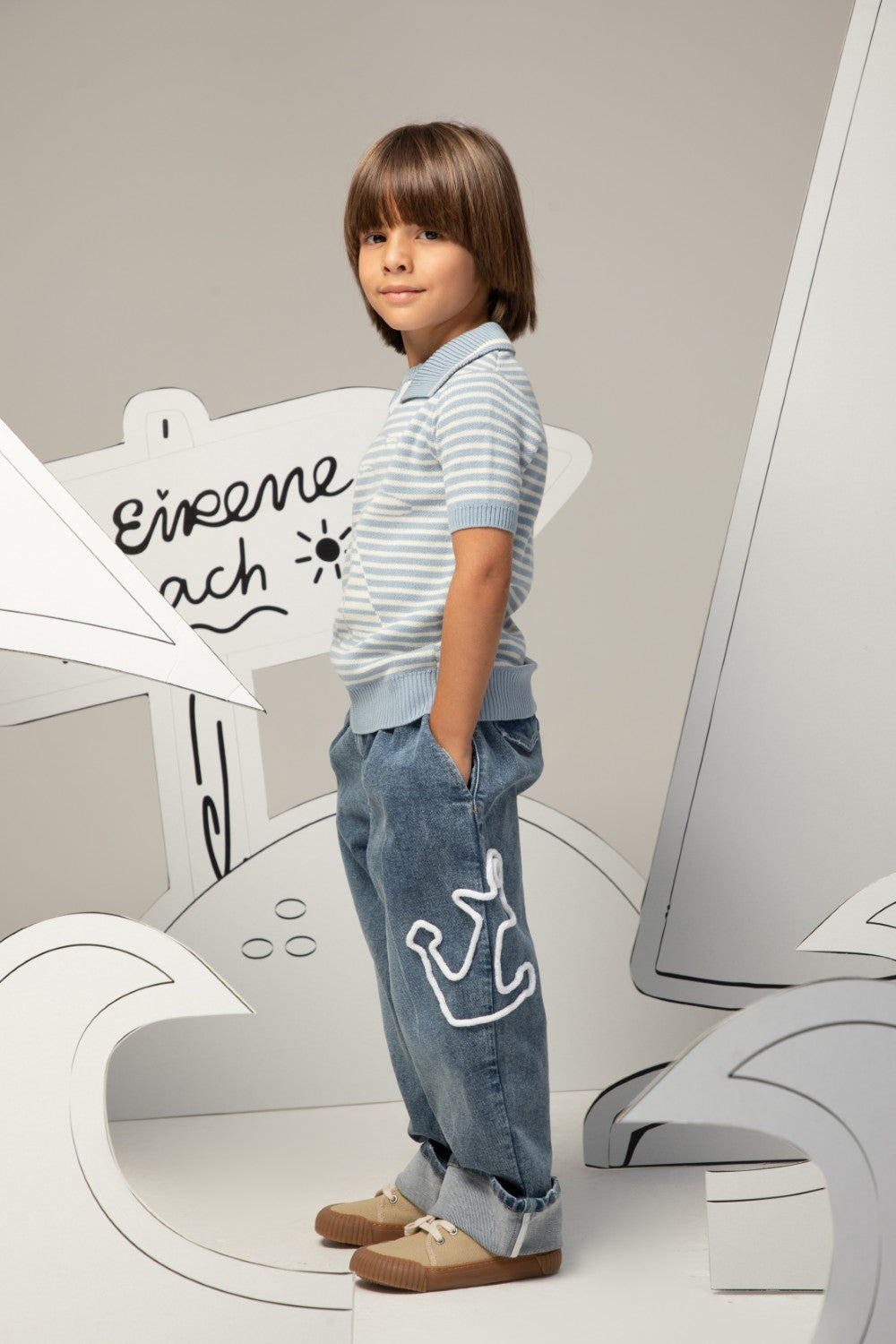 This light blue and white striped knit shirt exudes playful maritime charm. Crafted from soft, breathable cotton, it is an essential piece for elegant casual wear.
