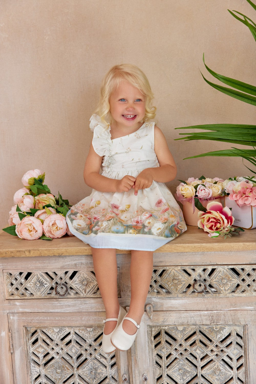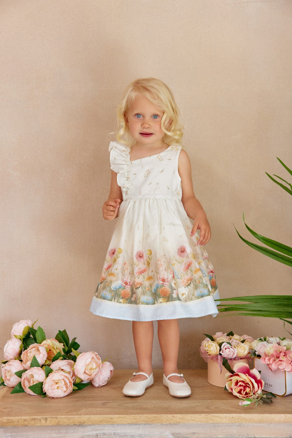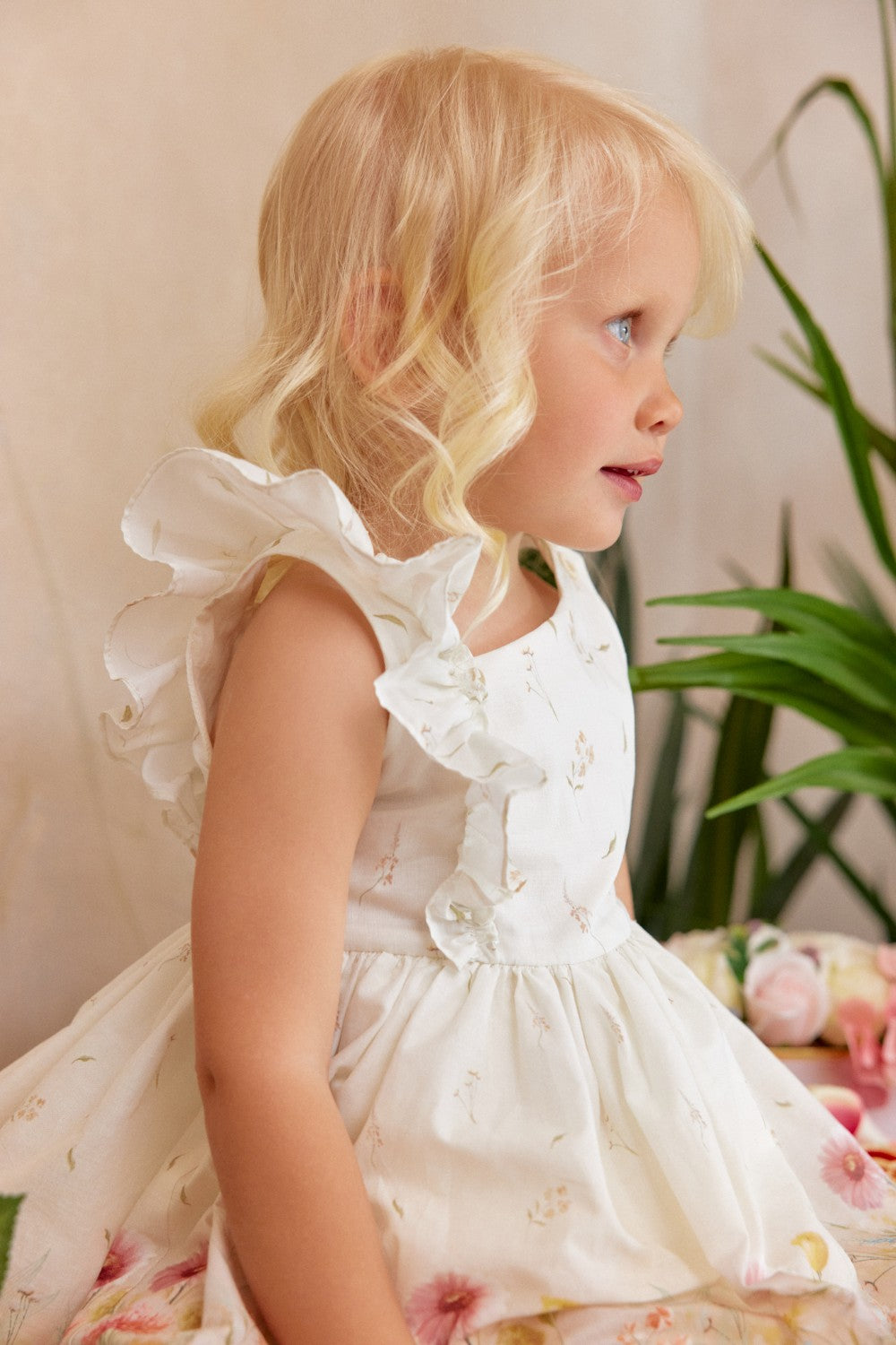 The voluminous ruffle trim adds beautiful movement and a unique artisanal touch to the silhouette. It feels wonderfully soft against the skin, ensuring all-day comfort for your little one.
