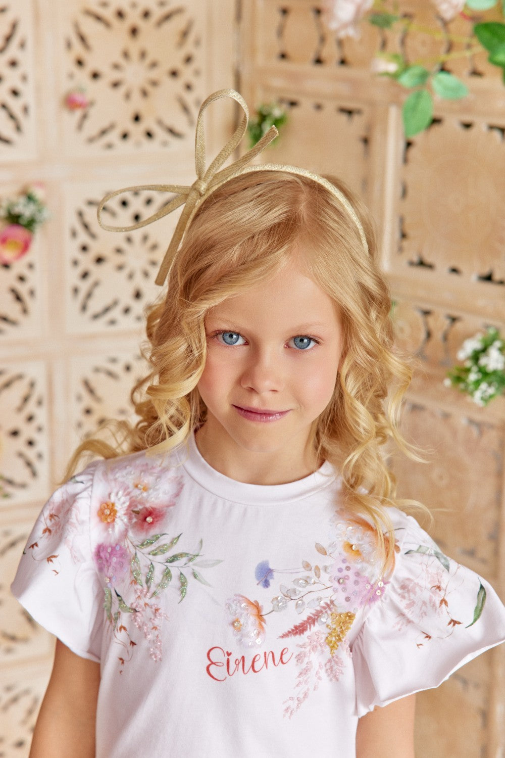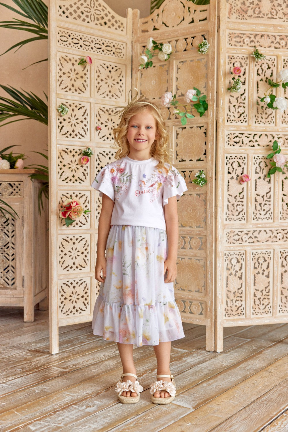 This charming White cotton t-shirt, featuring a delightful floral print, offers everyday elegance for your little one.